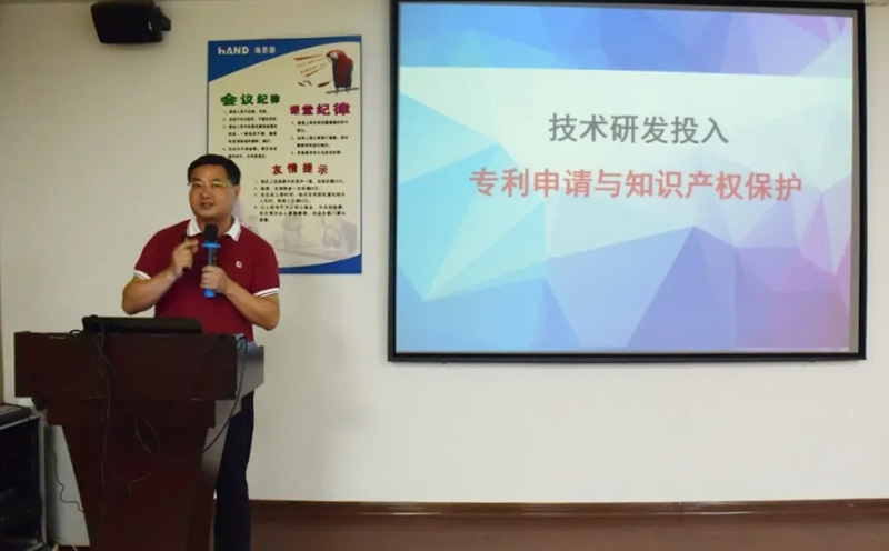 圖為海恩德機電陳鵬奇分享 海恩德機電陳鵬奇作為代表上臺分享公司在知識產權運營方面的經驗。他分別從公司發展歷程、研發投入、現有專利布局等方面進行介紹。據陳鵬奇透露,目前公司正參與申報高價值專利組合項目,未來將構筑相關專利池。
